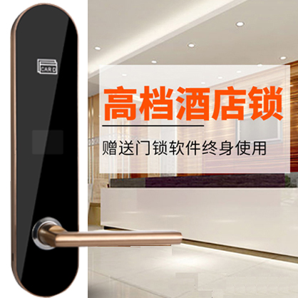 隐藏式钥匙孔,全铜锁芯,安全美观,紧急情况用钥匙开锁。室内开启反锁功能(反锁旋钮),室外刷卡无法开锁,关门自动上锁,让客人拥有安全的生活空间。