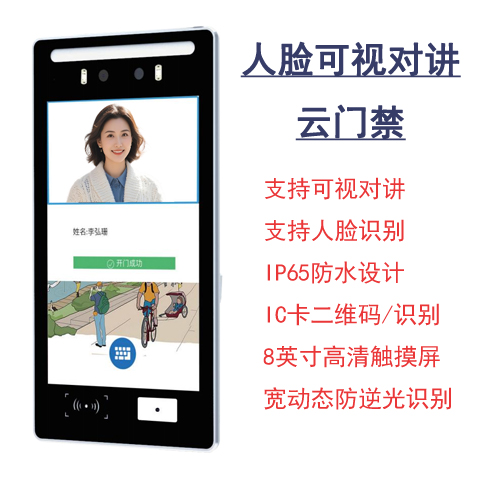 。深度学习算法识别速度快、准确率更高,低功耗发热低,支持人脸识别、掌纹识别、身份证识别、蓝牙、IC卡等多种验证方式,8寸全高清屏幕,高屏占比,支持挂墙、嵌入式式安装,主要应用于小区、园区、大厦、校园、医院等场所