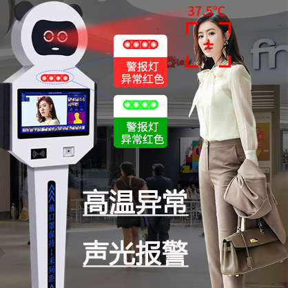 真地YKM03热成像测温机器人,采用进口高精度测温芯片,测温速度快,1-5米远距离测温,误差≤+0.3°C;免接触测温算法+宽动态RGB摄像,支持20人同时测温,商场、写字楼、医院等大流量场所智能测温通行;实时记录通行人员及体温,检测到疑似发热人员自动预警。