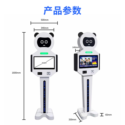 支持检测人员有无佩戴口罩,检测到未佩戴口罩人员,机器人自动语音警报,加强防控管理;自带15.6英寸触摸显示屏,触控灵敏,自动显示实时画面,不用外接显示屏,通电即可使用,省心省力;配有智慧测温管理软件,局域网获取、储存并统计分析数据,一目了然。