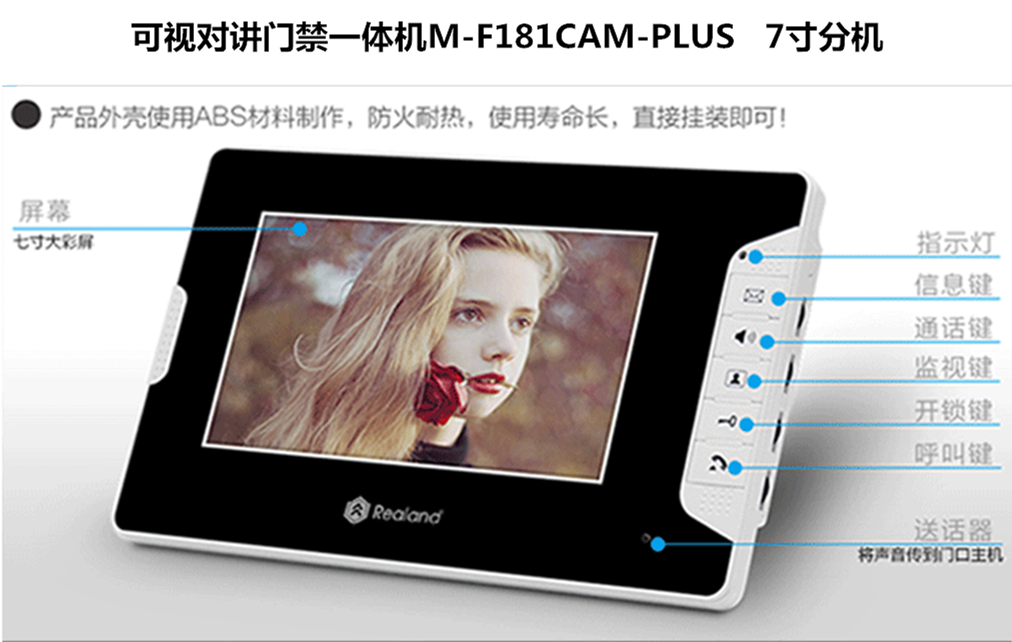 除了主机功能强大,广州真地可视对讲门禁一体机M-F181CAM-PLUS的分机也不容小觑哦!